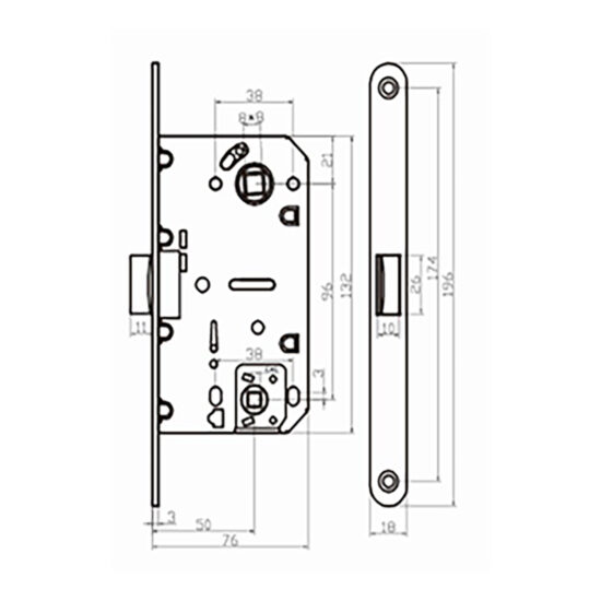 - Dimensiuni broasca: 7.6 cm adancime, 19.6 inaltime, 1.8 cm grosime.