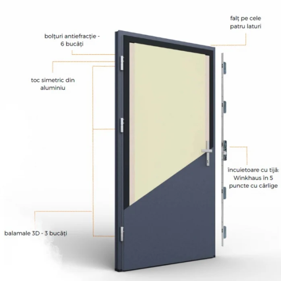– cele 3 balamale reglabile 3D asigură fixarea etanșă și solidă a ușii în toc