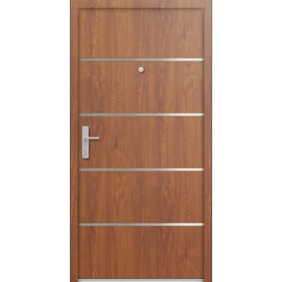 Proiectată și realizată meticulos pentru a îndeplini cele mai înalte standarde, această ușă de intrare asigură siguranță și protecție spațiului rezidențial.