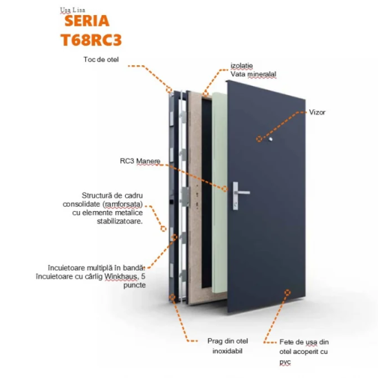 – grosimea ușii de 68mm