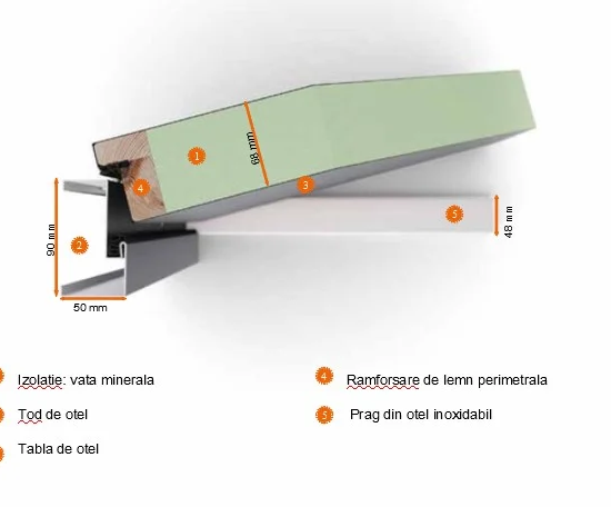 – tablă de oțel cu grosimea de 0,5 mm+folie pvc