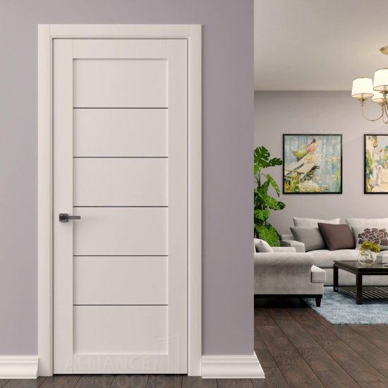 În varianta standard ușa este echipată cu toc reglabil 10-14 cm + pervazuri drepte pe ambele părți (5 buc. în set) + 3 balamale + broască magnetică Bonaiti (Italia).
