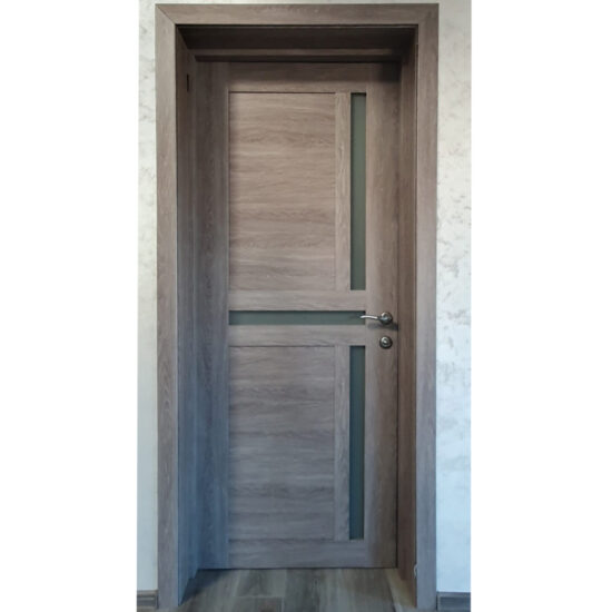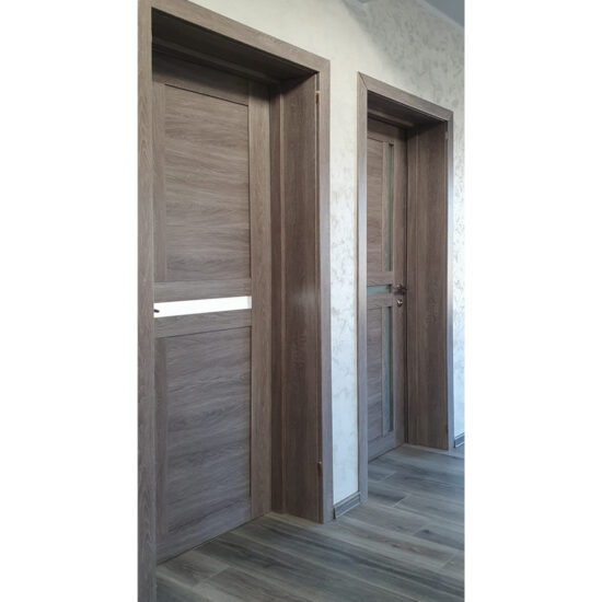 Usile de interior sunt comercializate in pachet complet, care contine foaie de usa, set toc reglabil, cu latime de 10 centimetri, taiat in unghi de 45 grade, pervazuri reglabile pentru ambele fete, cu o latime de 7 cm, 3 balamale, broasca, manere si sistem de blocare la alegere.